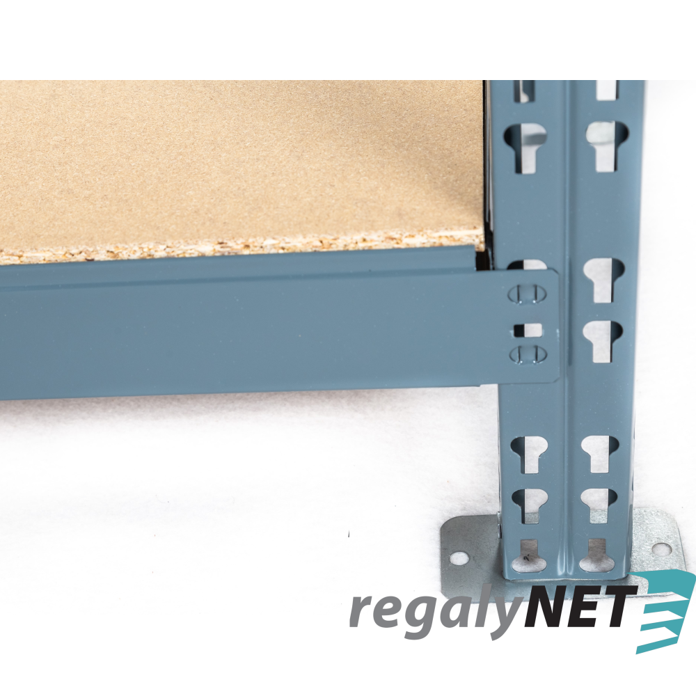 Rohový viacúčelový kovový 5-tich policový regál. Nosnosť DTD police je 200kg. Lakovaný policový regál vo farbe - tm. siva , RAL 7031 .